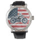 フリーダムライド:レトロオートバイとアメリカ国旗 腕時計