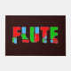 ハッチパターンに囲まれたカラフルブロックのフルート文字ユニークは、木風ミュージシャンや音楽先生、学生のためのギフトデザインであり、コンサートやマーチングバンド。