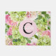 柔らかいパステルピンクと新鮮な緑の色調のアジサイ、牡丹やバラと水色の花束。モノグラムと名前でカスタマイズ。