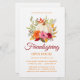 友情/感謝祭ディナーオープンハウスの招待の予算紙。明るい秋の花と水彩ボホモチーフの白いカボチャ紅葉とフェスティバル色のスクリプト文字。クリックカスタマイズは、文字または背景色を変更する。