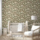 フローラセージ緑ベージュリリー植物模様 壁紙