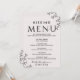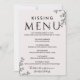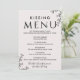 このフローラキスをするタイポグラフィメニューはエレガントな結婚式披露宴に最適。ロマンチックなデザインシンプルは、花飾や植物の縁取り、微妙な赤面の背景を持つレタリングを特徴とする。