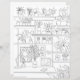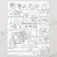 白黒モダンフローラハウス植物デコールのワークスペースは、花と葉イラストレーションと、片面の着色ページとして使用できる完璧な文房具。