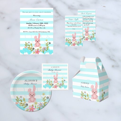 Floral Bunny Blue Stripes Baby Boy Shower Partyデザイン: Calart Creations