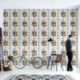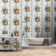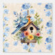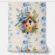 水色の鳥のフローラの上に置かれたバードハウスの青いストライプのフローラにテクスチャクリームの背景。