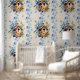 フローラバードハウスバストライプのードブルーのテクスチャクリーム 壁紙