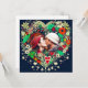 赤かわいらし色、濃い青とベージュのカラフルの花お洒落フォークアートスタイルフローラハート。自分とパートナーの写真をパーソナライズ領域に追加する。クリスマス、バレンタインデー、記念日のための甘いロマンチックな贈り物。