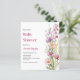 シックな白い背景。ピ飾ック、紫、黄色の花が咲く山の花。カスタマイズし、お母さんの名前を追加するbeおよびパーティー詳細。1枚= 1枚の招待状を印刷したエッジからエッジ