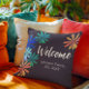 この可愛いフローラをテーマにした枕は、カラフルデイジーデザインと暗い背景の訪問者のための歓迎と家族の確立されたメッセージを特徴とする。これはおもしろいデザインで、リストのパーソナリゼーションカスタムツールを使用しもして、マットを編集したいメッセージを作成できる。玄関の装飾やデッキでゲストを歓迎する場合に使用。