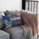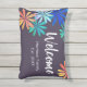 この可愛いフローラをテーマにした枕は、カラフルデイジーデザインと暗い背景の訪問者のための歓迎と家族の確立されたメッセージを特徴とする。これはおもしろいデザインで、リストのパーソナリゼーションカスタムツールを使用しもして、マットを編集したいメッセージを作成できる。玄関の装飾やデッキでゲストを歓迎する場合に使用。