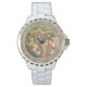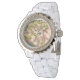 Ted Ensley Gardensで黄色、オレンジ、ピンクのチューリップを撮影したオリジナル写真に美しい効果を使用した可愛いフローラホワイトウォッチ。