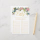 このおもしろいゲームはフローラボホシックなベビーシャワーに最適!ゲストは空欄に対応する文字で始まるベビー項目を記入する。お母さんの一番のマッチを手に入れた書者が勝つ!