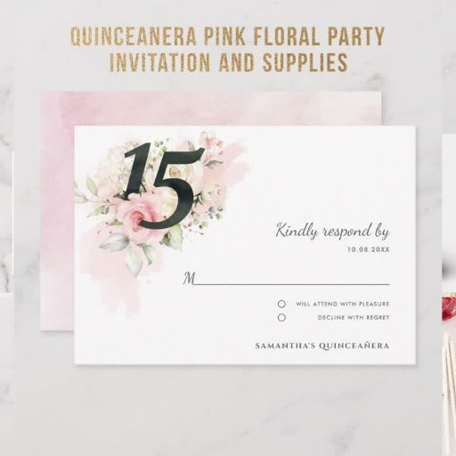 フローラモダンキンセアニェラ15th誕生日ピンク 招待状