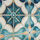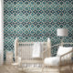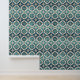 フローラモロッコタイルパターン#1ティール(緑がかった色)ホワイトID1078 壁紙