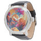 フローラ抽象芸術アートオレンジレッドブルー花 腕時計
