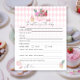 「甘いものが醸造されている」。水彩茶パーティーテーマベビーシャワー。お茶、マカロン、カップケーキ、花の水色カップ。ピンクの菱形。
