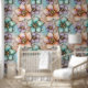 壁紙フローラティールライラックオレンジ