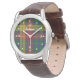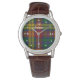 レザースタイリッシュストラップ腕時計、クラシックカラフルブキャナンタータンチェックプレイドパターンと、顔上に、白い数字とドットで時間の間。白カスタム文字ブ読チャナンは、あなたが望むものパーソナライズされたに読することができます。