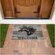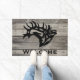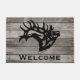 この「種類ユニークの1つ」ブルエルクドアマットをパーソナライズ!ブグリングブル威厳のあるブルエルクブラックシルエット…灰色の木の背景に!オリジナルファインアート絵を描ズバイアーティストKerry Miller.