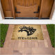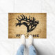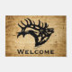 この「種類ユニークの1つ」ブルエルクドアマットをパーソナライズ! ブグリングブル威厳のあるブルエルクブラックシルエット…ストレスのある木の背景で!