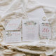 ボヘミアンスタイルの結婚式の感謝カードは、個人名のイニシャルとスクリプトの「ありがとう」が特徴で、春の花、植物の葉、素朴な鳥の羽のアクセントでフレームに収められている。ソフトな春と夏の色合いには、ピンク、ピーチ、クリーム、グリーン、グレー、ゴールドの色調が含まれる。
