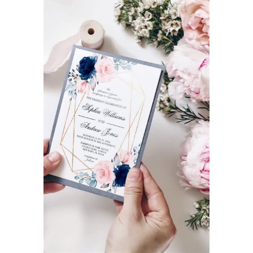 ブッシュピンク&ネイビーブルー 花柄 80歳の誕生日 招待状