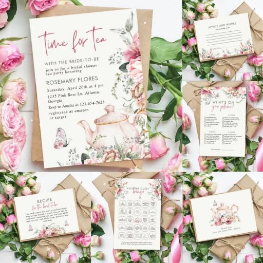 お茶の時間ブライダルシャワーエレガント素朴なフローラレシピカードヴィンテージボホブライダルシャワー茶パーティー