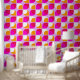 ブライトサマーピンクオレンジレトロアートパターン 壁紙