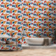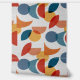 美しいミッドセンチュリーモダンのオレンジ、赤と青の明るい幾何学的レトロな抽象芸術パターン。ギフト、ホームデコール、子供部屋デコール、パーティーデコールに最適。抽象芸術シェイプ、アート、ミッドセンチュリーモダンデザインを愛する人にとって理想的なモダンデザイン。