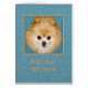 緑の背景のかわいいポメラニア犬犬のデジタル絵画はこの空白のなノートまたは挨拶状を強調します。 あなた自身のキャプションをカードの前部に加えるか、または消すために残すのにテンプレートを使用して下さい。