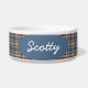 青い名札が付いているかわいい茶色および青の格子縞。 あなたのペットネームとのそれをカスタマイズ。