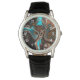 ブラウンとブルーのティール(緑がかった色)大理石の流体アート 腕時計
