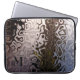 Judy Adamsonのデジタルデザインから、モノグラムと抽象芸術が渦巻き、きらめく、きらめく、茶色と銀色の白の瞬間効果パターンを持つ、ノートブックPCにパーソナライズされた独特のネオプレンスリーブ。モノグラムまたはカスタマイズイニシャルは、フォントまたは色を変更するか、完全に削除することによって使用できる。このデザインは袖に合う。