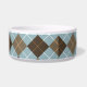 ブラウン、金ゴールド、スカイブルーモノグラムアーガイル ボウル