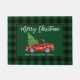 ブラシスクリプトグリーンプレイドクリスマスヴィンテージトラック ドアマット