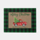 ブラシスクリプトグリーンプレイドバーラップクリスマストラック ドアマット