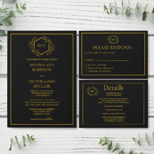 黒と金ゴールドモノグラムクレスト両面プログラムカード