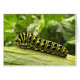 これは、アメリカアゲハチョウ、パルスニップアゲハチョウまたはパセリ虫としても知られているブラックアゲハチョウバタフライ(パピリオ多量体)の毛虫を特徴とするノートカードである。この種はパセリ科のメンバー(ニンジン、ディル、フェンネル、パースニップを含む)に住み、食べる。金ゴールドと黄色で斑点された黒いバンドを繰り返し、興味深い抽象芸術パターンを作成する美しい緑の生き物。この木は葉の上に広がり、葉は濃い緑に囲まれている。もう二つ小さな毛虫が中にいる。