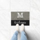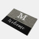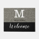 ブラックアンドシルバーグリッターモノグラム名ようこそ ドアマット