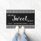 家名素朴の家庭用スイートパーソナライズされたホームドアマット。黒と白のギンガムの格子縞模様は、玄関の飾り立てに素朴な田舎風の雰囲気を与えます。