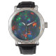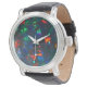 赤とクラシック緑の火で満たされた黒いオパール顔と素敵なデザイナーウォッチ。