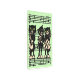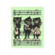 このメタルウォールアートプリントは、ライトグリーンな背景に黒い音符のシートに立ち遊ながら、グリーンな目の楽器を持つブラックキャットジャズミュージシャンを3つ持つ。