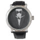 黒い背景にフォーマル黒と白の上品なタキシードとタキシード時計。文字を追加し、背景色を変更できる。