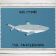 おもしろいと特に邪悪ではない黒い先端のリーフシャークデザインティール(緑がかった色)の緑の背景。海を愛する人のための穏やかなユーモア。パーソナライズする文字と名前の変更。オリジナルアートby Nic Squirrell.ボートやビーチの家や沿岸生活に最適。