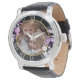 ブラックパープルフローラカスタムチルドレン写真テンプレート 腕時計