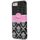 ブラックピンク&ホワイトダマスク&水玉模様パターン Case-Mate iPhoneケース