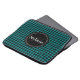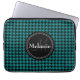 ティール(緑がかった色)ブルーと千鳥格子のブラックのレトロ幾何学模様あなたのモノグラムと名前のための黒と白の名札とカスタム一緒にのパーソナライズされた織物パターン。