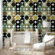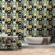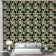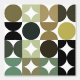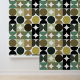 ブラックマスタードブラウンベージュグリーンサークルパターン 壁紙