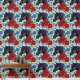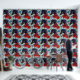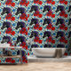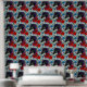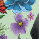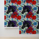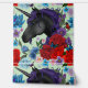 緑のセージを背景に紫と赤の花を持つ黒いユニコーン