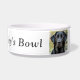 可愛い黒いラブラドール、カスタマイズ可能な文字、犬の手のカスタマイズ可能な写真を持つ白いペットボウル!自分の犬や猫の写真をアップロードして、名前を変えるだけ。新しいペットを迎える家族への贈り物として完璧!